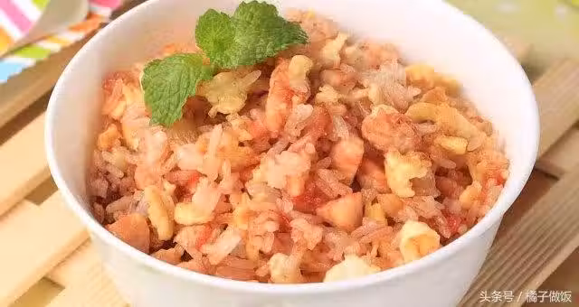 9 關火後盛出炒好的米飯,裝入盤中待用。