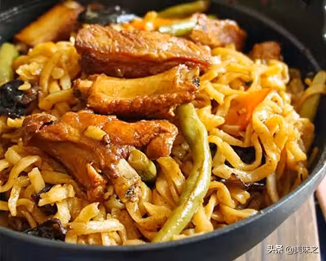 精排400g、豆角200g、胡蘿蔔40g、泡發木耳40g、面350g、油適量、鹽適量、料酒1大勺、蔥25g、姜10g、蒜15g、大料1g、花椒少許、醬油適量、白糖適量、老抽適量。