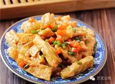 12)料汁冒泡後,加入炸好的切條下鍋翻炒,使每根切條均勻裹滿料汁即可。