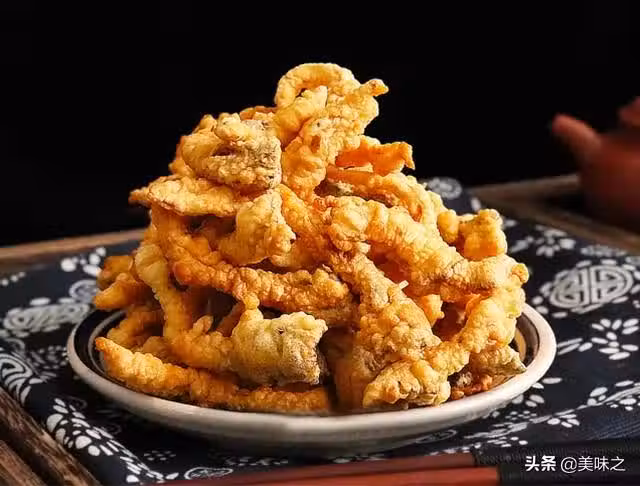 6、炸制金黃色看著不軟了撈出(喜歡吃比較酥脆的那種,可以出鍋後接著在倒入油鍋里重複炸一下)。