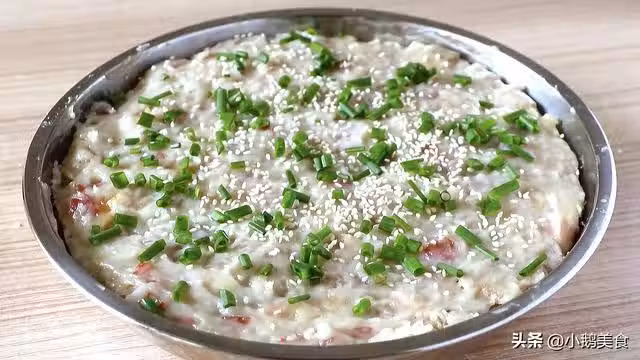 出鍋後可以聞到濃郁的臘腸香味,非常香。稍微冷卻一下,撒上蔥花白芝麻點綴一下,切成小塊就可以開吃了。芋頭口感軟糯咸香,再加上臘腸獨特的香味,真的非常饞,當早餐當下午茶都超好吃。
