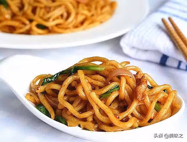 8、最後下入麵條翻炒。