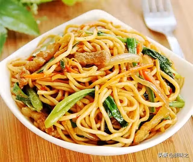 7、加入蒸好的麵條一起翻炒。