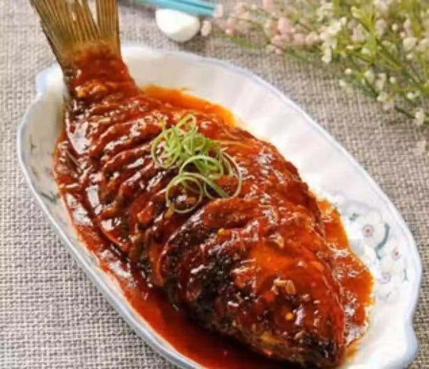 7、到鍋內芡汁明亮均勻,把芡汁澆到炸好的鯉魚上面即可