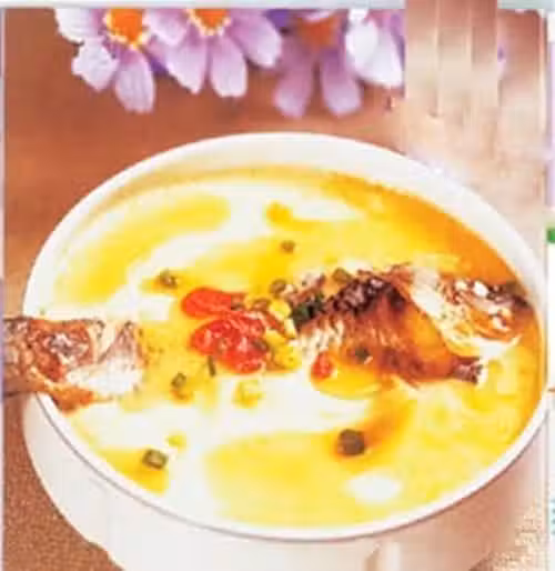 4、將雞蛋攪打均勻,加入魚湯,再放入鯽魚,上籠蒸至雞蛋凝固即可。
