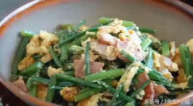 2、培根最好炒得焦一些更入味,而且用炒培根的油來炒韭薹葷香十足;