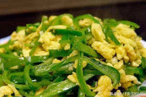 3、炒鍋中倒油,油熱至6、7成時下青紅椒翻炒;青紅椒翻炒出香味後下打好的蛋液;蛋液凝固後用鏟子炒碎即可出鍋。