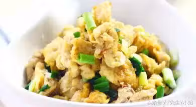 3、下入蛋液快速打散;下入小蔥段炒勻製作完成。