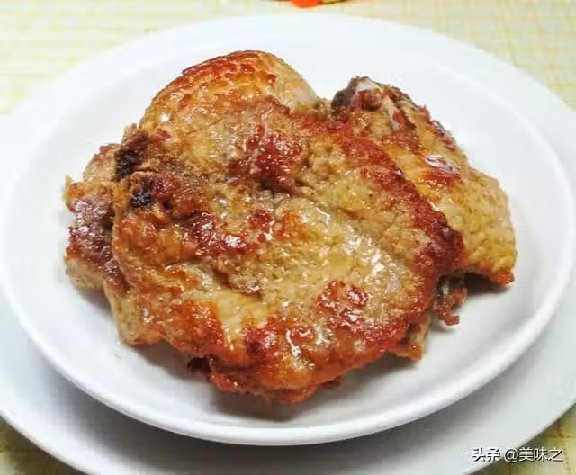 5、然後,取平底鍋置火上,加適量的油、下入腌制好的大排用中小火煎至兩面金黃即可。
