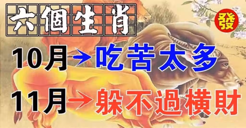 10月吃苦太多,11月躲不過橫財的生肖. »