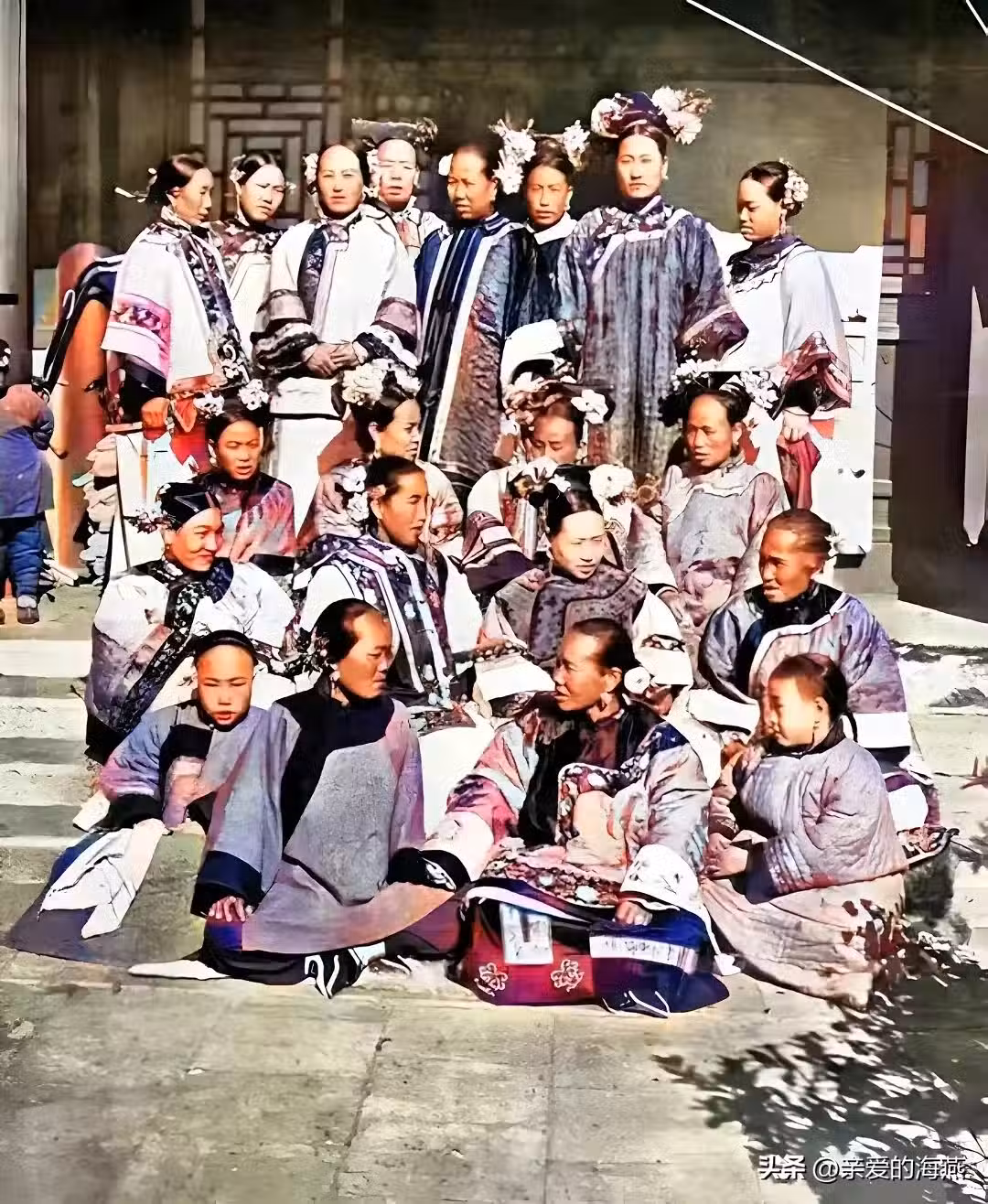 晚清時期,一富裕家庭貴婦們的合影。舊式婚姻實際叫世俗婚姻,不是現在你情我願的婚姻。婚前對結婚對象一無所知,幾乎是陌生的存在。儘管妻妾成群,但真正中意者幾乎和中大獎差不多!長相嘛,幾乎等同於摸黑碰對,全憑運氣!