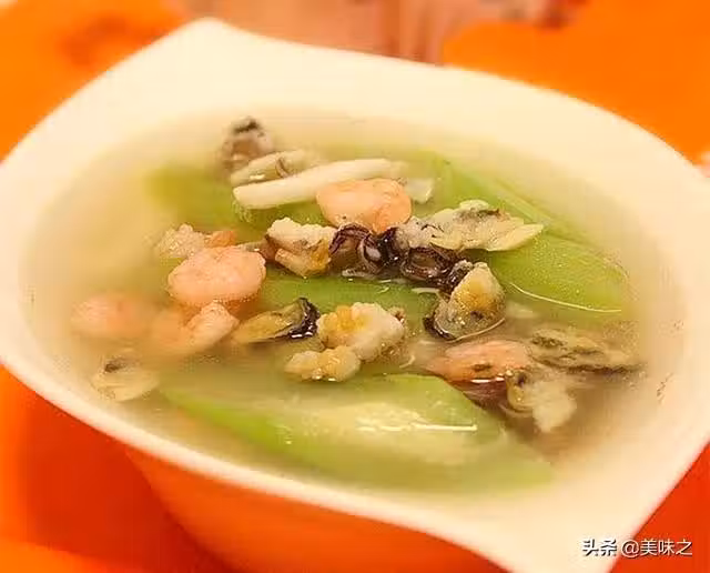 5、湯燒開,放入絲瓜和什錦海鮮。