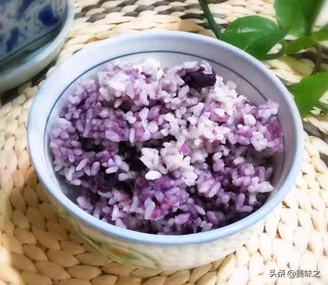 3、將紫薯放在大米上,也可以均勻的撒上。