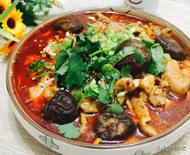 9、再擺上蔥、香菜、淋上熱油,香噴噴的水煮肉片完成。