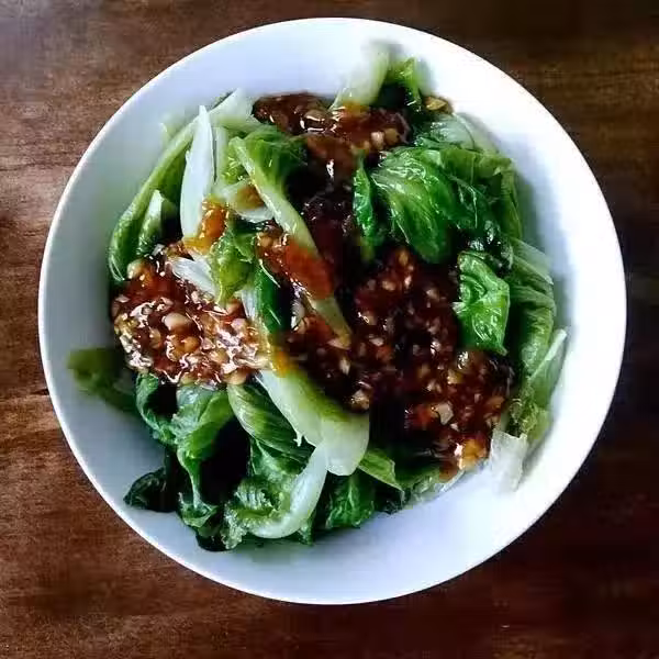 生菜、蒜、蚝油、白糖、醬油、水澱粉;