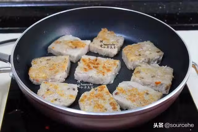 【sourcehe溫馨小貼士】1.白鯊蘿蔔糕粉也可以做芋頭糕;2.芋頭要挑選紫色的芋頭,也叫香芋。3.蒸芋頭的時候一定要蒸熟透,看見沒蒸熟要繼續蒸。4.蒸熟的芋頭糕可以直接吃,鮮香軟糯很好吃。也樂意煎,煎的芋頭糕特別香。