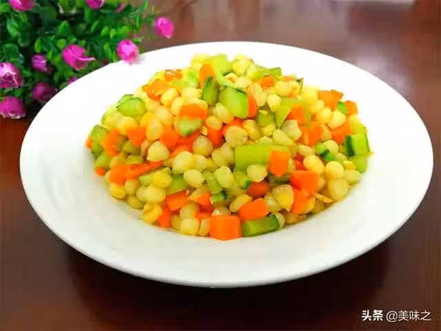 胡蘿蔔1根、黃瓜1根、玉米粒150g、油20g、鹽3g。