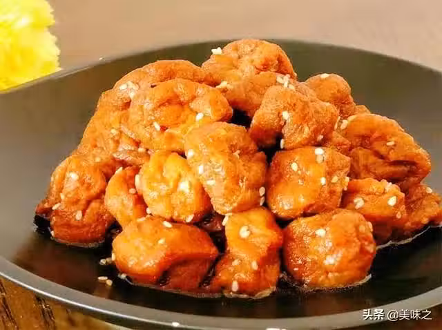 8、收干湯汁的豆腐撒上白芝麻,待冷卻後放入蜂蜜和香油拌勻即可。