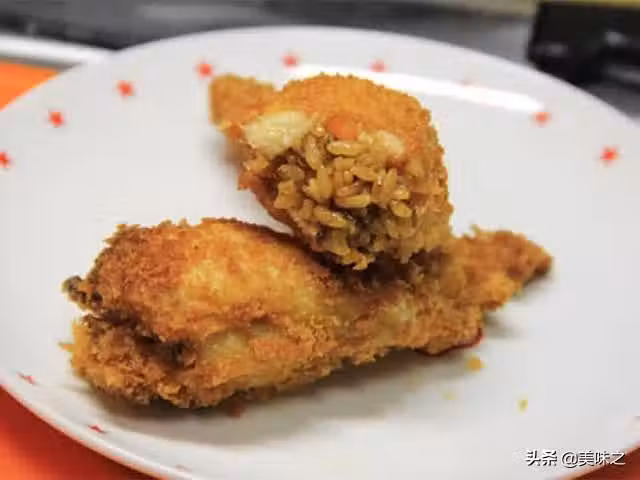 4、往去骨的雞翅中塞滿糯米餡。