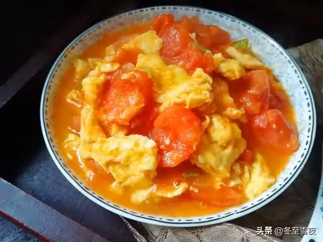 【番茄炒蛋】所需材料:雞蛋3個、西紅柿3個、蔥1段、油鹽適量、白糖1湯匙、