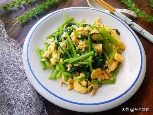 【茼蒿炒雞蛋】所需材料:茼蒿300克、雞蛋3個、油鹽適量、大蒜3瓣