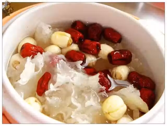 銀耳又稱為「窮人的燕窩」,燕窩雖補,卻價格昂貴。銀耳無論顏色、口感、功效都和燕窩相似,價格便宜,所以稱為窮人的燕窩燕窩太補易上火。銀耳為涼補有潤燥的作用。燥氣和火氣就像急性慢性病,火氣來得急去的快。但是火氣太久未消就會轉成燥氣所以吃銀耳最有效銀耳、用桂圓乾、枸杞、紅棗銀耳熬湯,銀耳紅棗湯不但是美味的豐胸小點,還能使你的臉色白裡透紅,體態輕盈苗條。