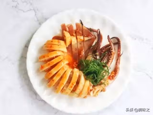 6、用甜辣醬蒸過的魷魚口感爽嫩,味道鮮辣。