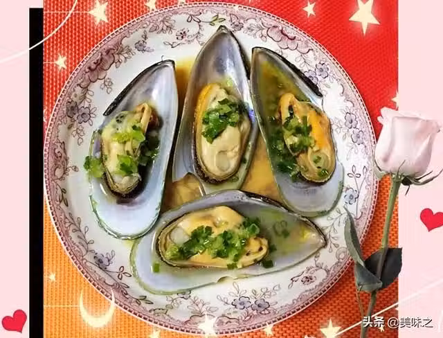 3、將炒好的蔥花放入青口貝上放入蒸鍋大火蒸8分鐘左右即可。