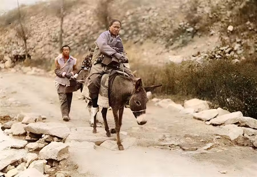 在當時,驢子是最主要的交通和運輸工具。驢子個子不高,負重大。驢子性格溫和,駕馭安全,小腳女子走不了遠路,騎驢出行就成了普遍現象。