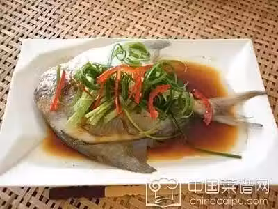 2、鯧魚放盆器中,加黃酒,鹽,醬油,蔥結,薑等,再將洋蔥連油澆上,然後將鯧魚連容器放鍋中或上蒸籠蒸20分鐘左右,魚熟即可取出。
