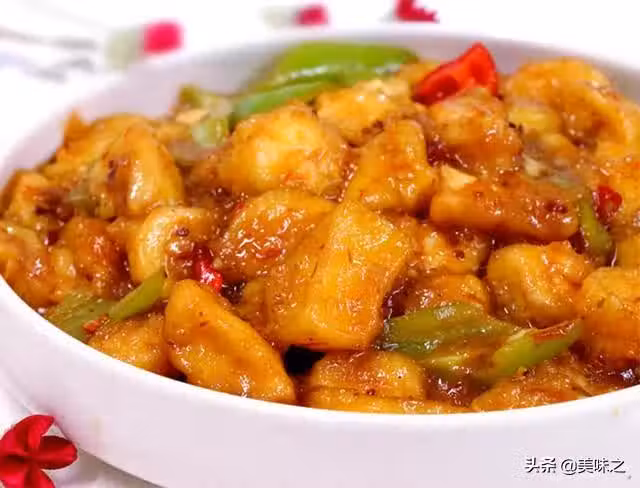 日本豆腐、生粉、青椒、醬油、油、蒜、豆瓣醬、鹽、紅椒。