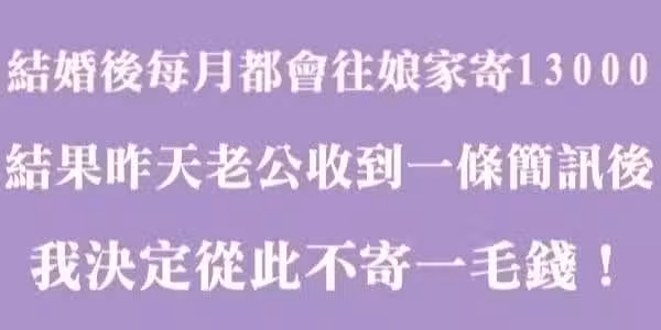 婚後每個月我往娘家寄一萬三千元,結果看到昨天老公收到的一條簡訊後,我決定從此不寄一毛錢!