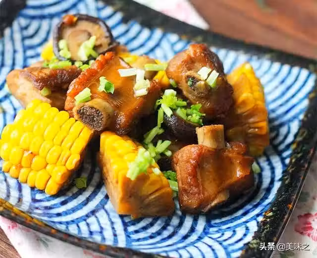 肋排300g、玉米一根、新鮮香菇數個、蔥一段、姜一塊、啤酒330ml、食用油少許、生抽少許、料酒少許、鹽適量。