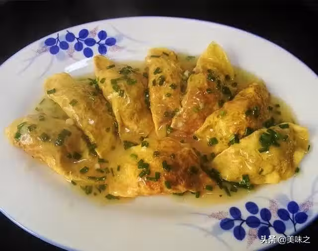 10、把薄欠澆在蛋餃上即可上桌享用。
