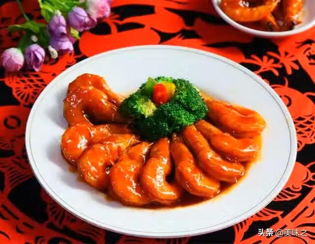 青蝦10隻、番茄沙司120克、鹽2克、白糖55克、料酒2大勺、蔥2段、白鬍椒粉少許、西蘭花少許、姜4片。