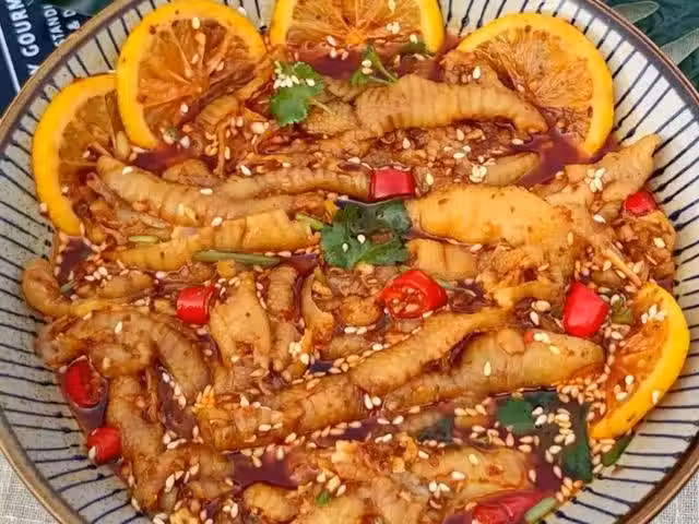 (1)雞爪處理清洗乾淨,檸檬洗凈切片,小米辣切圈,香菜洗凈切段,蒜瓣剝皮切末。