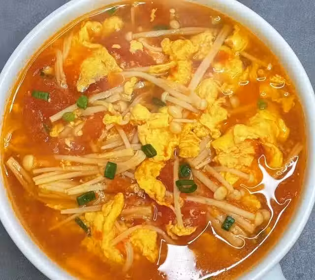 (1)番茄洗凈切成塊,金針菇洗凈去根部撕開,小蔥切蔥花備用。
