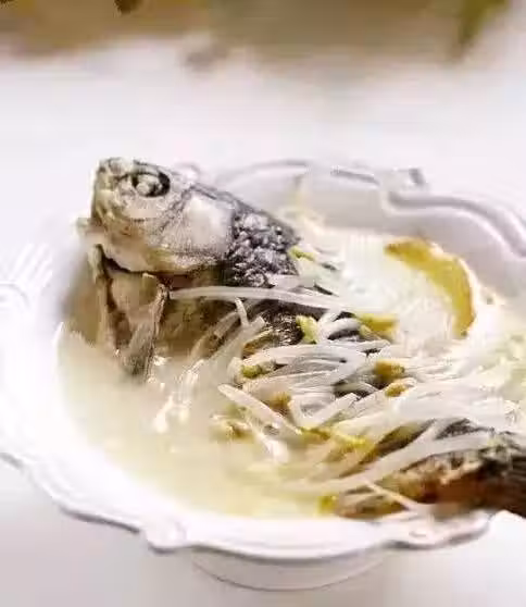 食材:鯽魚、黃豆芽、鹽、蔥、姜、料酒、胡椒粉。