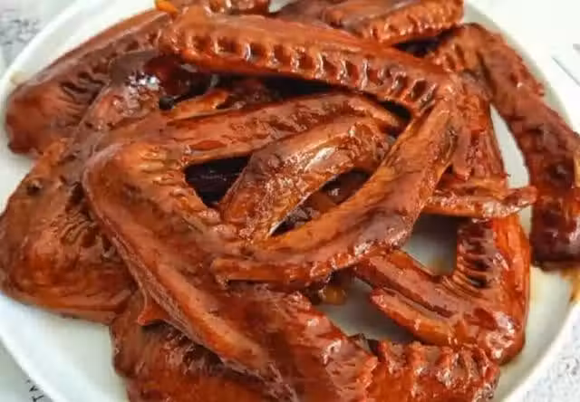(2)鍋中入水放入泡好的鴨翅,加入料酒蔥段和薑片焯水撈出備用。