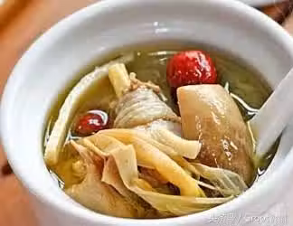 6.開蓋,將山筍、野菌、紅棗、黃花等下入煲中,加適量鹽,再小火慢燉30分鐘即可。