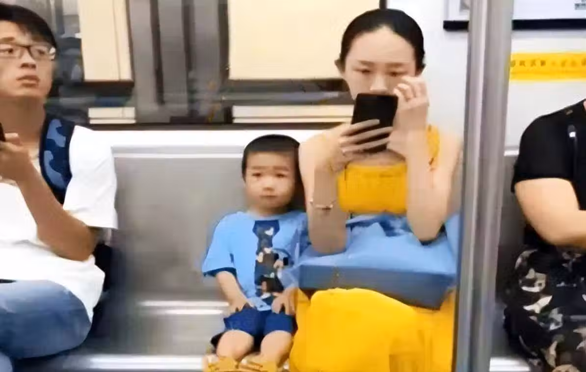 照片中,男孩端坐在媽媽旁邊,手擺在膝蓋上,哪怕媽媽注意力不在他身上,也不吵不鬧、不多占座嬉戲。