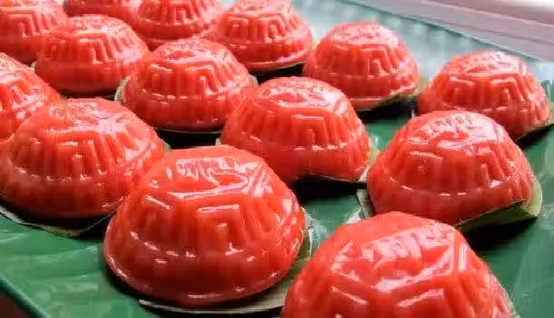 5、以中火蒸約2-3分鐘開蓋,再蒸2-3分鐘,開蓋,塗上少許食油,待冷後即可食用。
