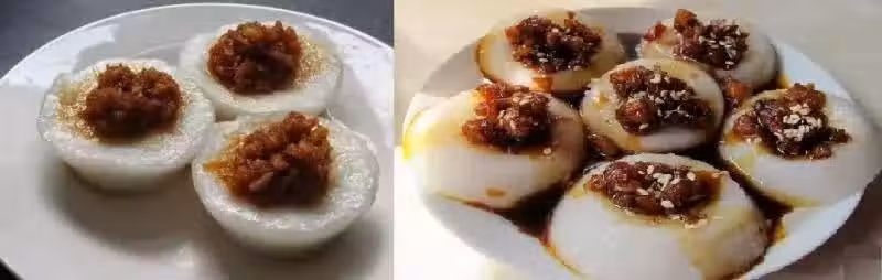 4) 把碗仔糕從小碗取出,鋪上菜圃,即可享用。