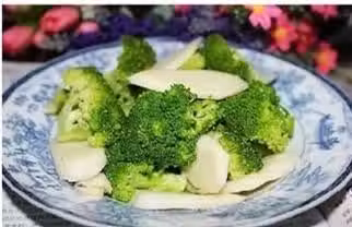 4、熱油鍋,爆香,倒入焯好的西蘭花和山藥片炒勻,加入鹽調味即可。