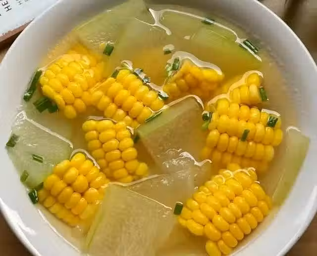 (2)鍋中熱油爆香蔥花,下入冬瓜翻炒片刻,放入玉米段,倒入適量清水大火煮開。
