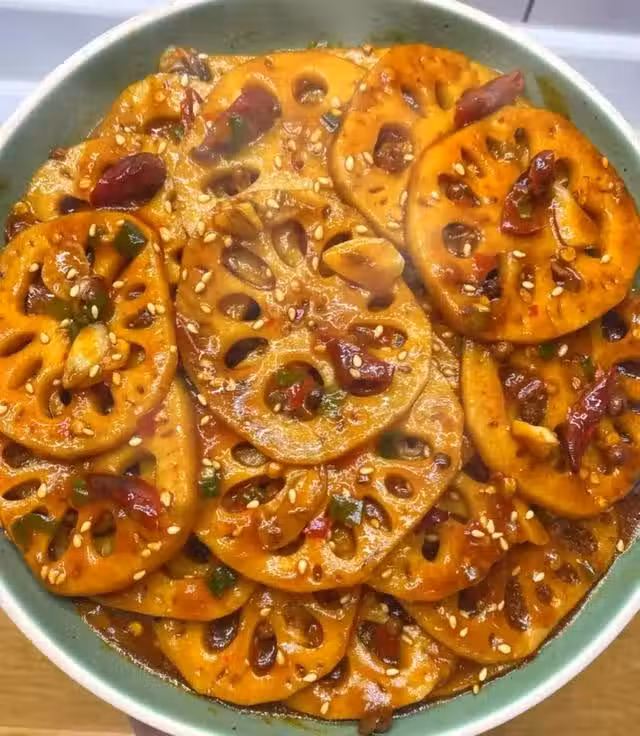 (1)蓮藕洗凈去皮切片,蒜瓣剝皮切末,小蔥切蔥花,干辣椒切段備用。