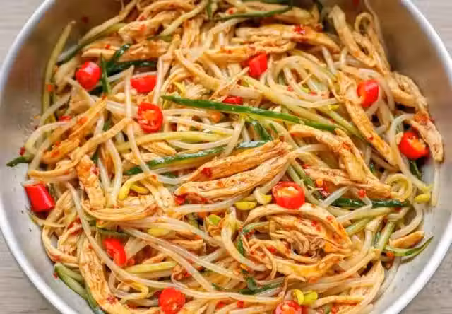 2、涼拌豆芽黃瓜雞肉絲的做法: