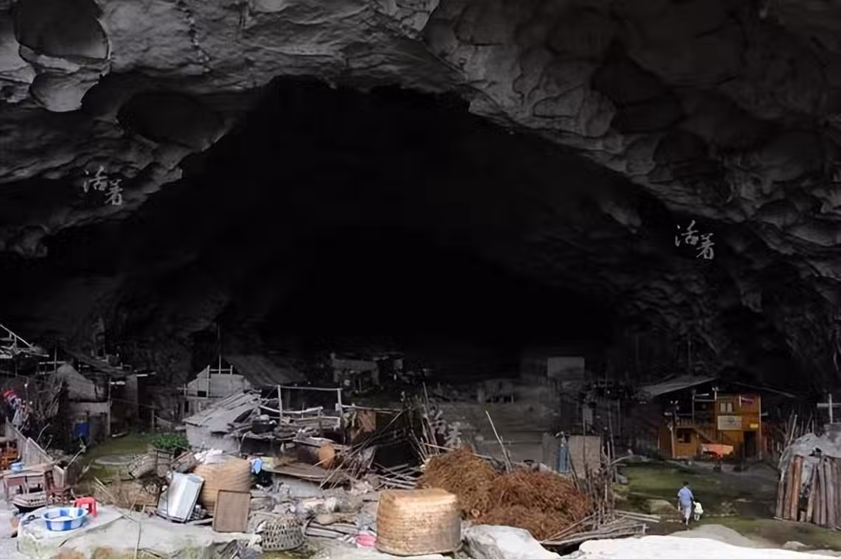 溶洞通往外界的唯一條道路是一條背靠峭壁的羊腸小道,300多年前他們的祖先是因為躲避戰亂才在此定居。