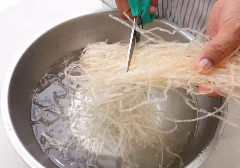 【洋菜條】剪小段,泡入冷水中約1~2小時直到軟化。取出瀝乾,直接倒入欲凝固之液體,以小火煮至完全溶解,最後再加入糖攪拌均勻,關火後稍微就能填充入模型中,完全冷卻後再放入冰箱冷藏。
