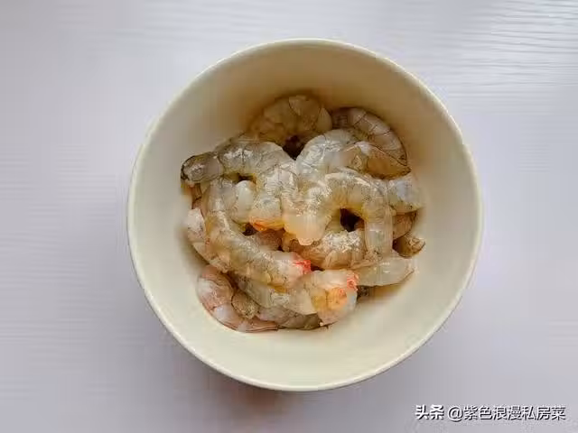 1.基圍蝦去蝦頭,蝦線蝦殼,活的基圍蝦不太好去殼,可以放冰箱冷凍一小時,既可以很輕鬆地剝出蝦仁。